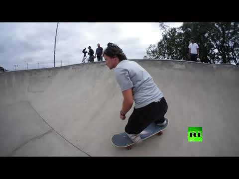 شاب مقعد يظهر مهاراته في التزلج على اللوح