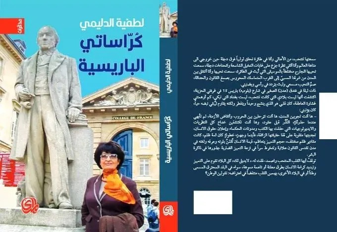 يكون الكتاب غريبا وجذابا عندما تصبح مُقدمته أشبه بالخاتمة وهو ما فعلتهُ الكاتبة العراقية لطفية الدليمي في كتابها التذكاري «كراساتي الباريسية» الذي صدرَ مؤخرا عن دار المدى، وبالحيرة نفسها بينَ المُقدمة التي تخفي خاتمتها تحتَ أسلوبها الأنيق، والخاتمة التي تُنازع فعلا لإظهار رونقها، تعنون الصفحة الأولى على النحو الآتي: بـ(لا الترحل بُغيَتُكَ ولا المكوث في السراب). تليها مجموعة من الجمل الصريحة الثرية مثل ثروة المرء وشعوره بكرامة جسده ونفسه، في أهم مكان أو بالأحرى جمل مُتدفقة مثل مَن يفكر بالموت، وهو في الأصل يفكر في الحُرية!