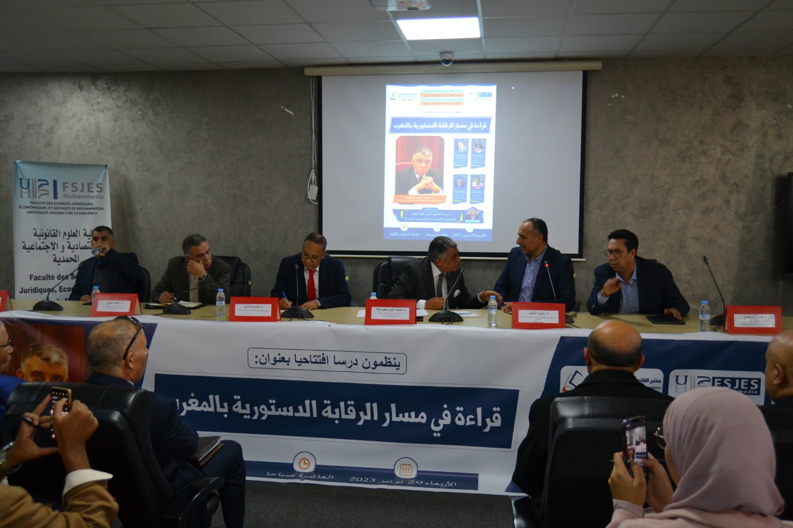 إسهاما منه في الدينامية العلمية والثقافية والإشعاعية، لكلية العلوم القانونية والاقتصادية والاجتماعية بالمحمدية، نظم “مختبر القانون العام وحقوق الإنسان”، وماستر “العمل البرلماني والصياغة التشريعية” وماستر “العلوم السياسية والتواصل السياسي”، إضافة إلى إجازة التميز “الدراسات العليا في العلوم السياسية”، و إجازة التميز في “الصحافة والتواصل السياسي”، درسا افتتاحيا تحت عنوان : قراءة في مسار الرقابة الدستورية بالمغرب، وذلك صباح يوم الأربعاء 29 نونبر 2023، بقاعة الندوات بالكلية، قدمه الأستاذ محمد أمين بن عبدالله، عضو المجلس الأعلى للسلطة القضائية؛