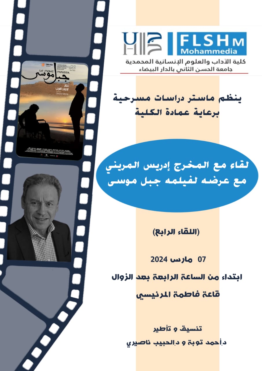 في إطار انفتاح الجامعة على محيطها الثقافي والفني، يحل المخرج المغربي إدريس المريني، ضيفا على كلية الآداب والعلوم الإنسانية بالمحمدية، يوم 7 مارس الجاري، وذلك في إطار سلسلة “لقاء مع مخرج”. هذه اللقاءات هي من تنظيم ماستر الدراسات المسرحية. فبعد استقبال كل من المخرج محمد مفتكر وحكيم بلعباس ومحمد عبد الرحمان التازي، سابقا، يأتي دور المخرج إدريس المريني، صاحب العديد من الأعمال الفيلمية التلفزيونية والسينمائية.هذا اللقاء سيعرف عرض فيلمه الأخير “جبل موسى”، وسيتلوه نقاش مفتوح مع طلبة الكلية حول العديد من انشغالاتهم الفنية.