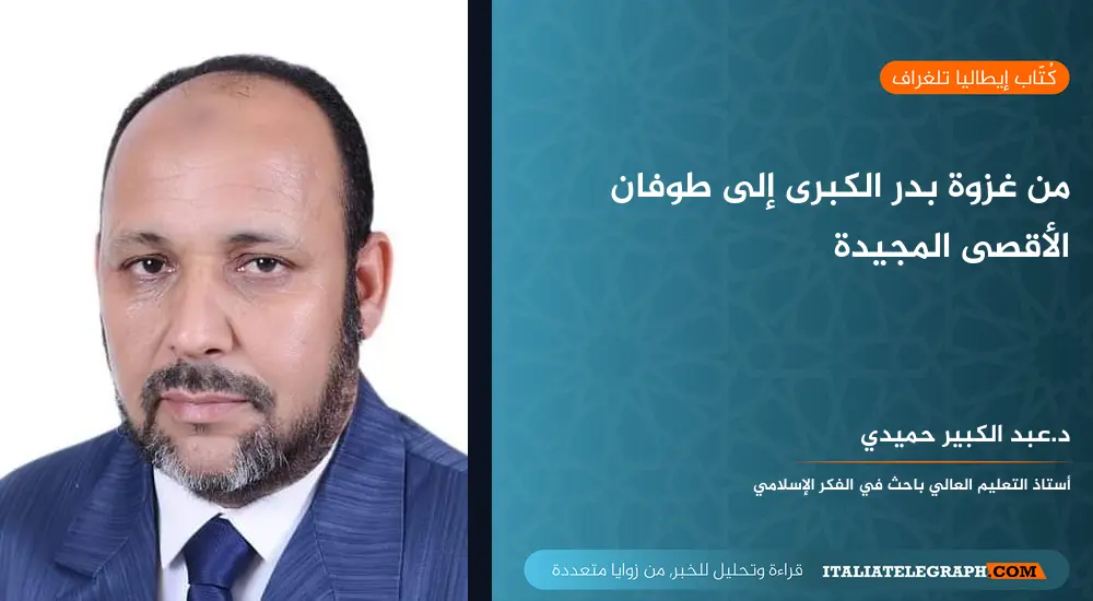 الوجه الثاني: على مستوى طبيعة المعركة: كلتا المعركتين تمثلان الصراع بين الحق والباطل وبين الإسلام والكفر، وإن اختلف شكل الكفر بين الحالتين، فقد كان كفر بدر كفرا قبليا لادينيا، تحمله قوة قبلية مشركة معتدة بنفسها، فخورة بتاريخها وتراثها وآبائها، تدين بالشرك وتعادي التوحيد، وترى في الإسلام خطرا وجوديا يهدد مركزها الديني ونفوذها الاقتصادي، ويفوت عليها مصالحها وامتيازاتها. بينما كفر طوفان الأقصى كفر قومي ديني تحريفي، يخلط بين الدين والقومية، بين اليهودية التلموذية والصهيونية القومية، ويكفر بكل ما ليس يهوديا، ويعادي كل القيم والقوانين والأديان، ويدين بأساطير دينية تلموذية وأكاذيب قومية، مثل أسطورة “شعب الله المختار”، و أسطورة “أرض الميعاد”، ومثيلاتها.