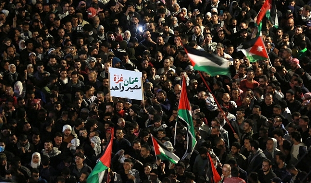 شهد الأردن مشاعر تضامن عالية مستحقّة في بداية الحرب، وكان زائر عمّان والمدن الأخرى يلاحظ كمّ المشاعر تلك في حملات مقاطعة أي بضائع ترتبط بإسرائيل، والحرص على التعبير عن التعاطف والتضامن مع القطاع وأهله، في تظاهراتٍ دوريّة، ولم يسمح الاحتقان لأي صوت بأن يعلو على صوت “المقاومة”، وانتشرت صور الناطق باسم كتائب عز الدين القسام، أبو عبيدة، وعباراته، من قبيل “النقطة صفر”، “وإنه لجهاد نصرٍ أو استشهاد”، وظهر السهم الأحمر المُصوَّب إلى أهداف جيش الاحتلال، كما في تسجيلات “القسّام”، في ملصقاتٍ على زجاج السيارات وأطرافها، وحافظات الموبايل…وغيرها. وبعد أسابيع من استمرار المقتلة الإسرائيلية، خفّ الاحتقان في محاولة للفهم واستيعاب حجم المأساة، قبل استعادة التظاهرات زخَمها، ليعود معها الاحتقان ويبرُز، هذه المرّة، بين المتظاهرين والأجهزة الأمنية.
