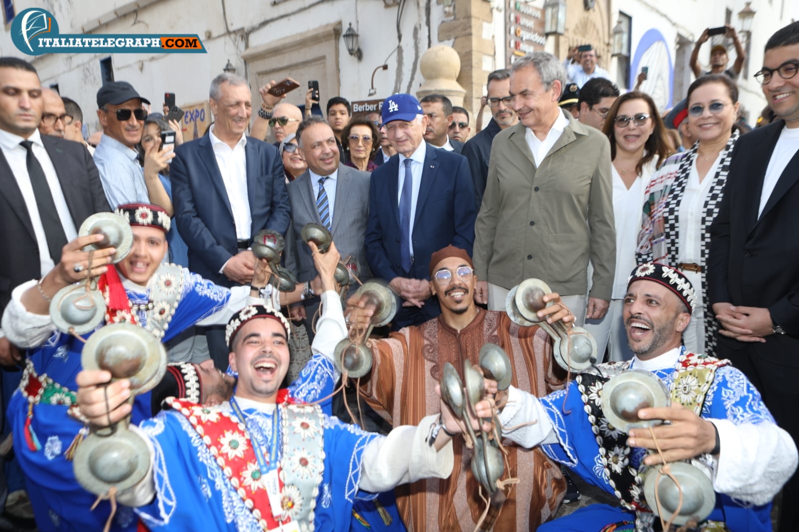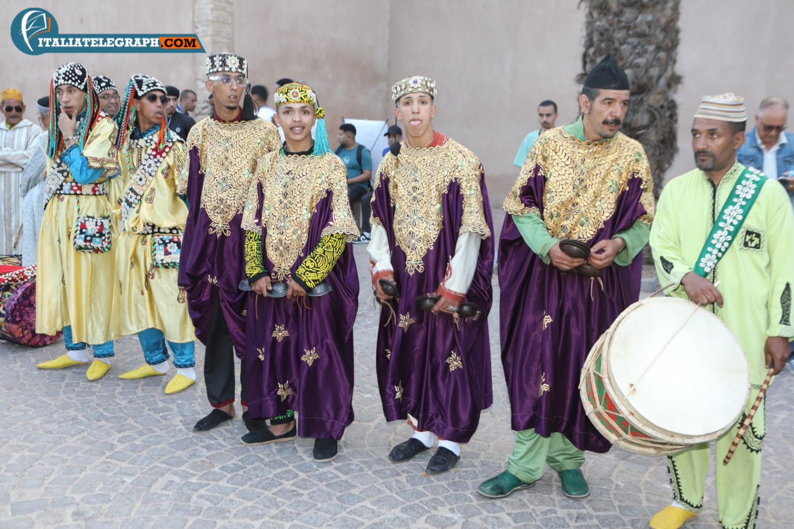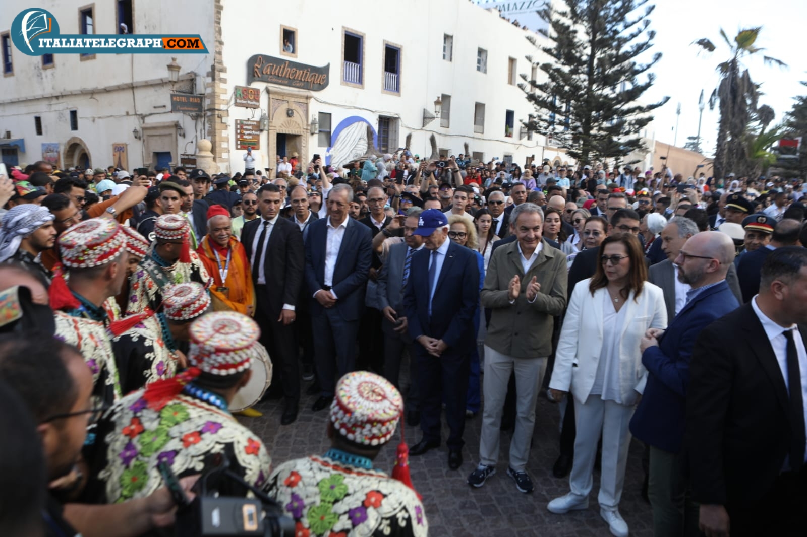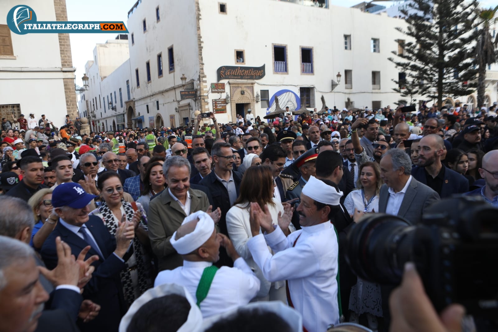و بكرنفال شعبي يضم “فرق فلكلورية”.. فعاليات مهرجان كناوة بالصويرة بحضور ابن مدينة الصويرة مستشار ملك المغرب اندري ازولاي و وزير الثقافة بنسعيد و الوزير الفرنسي السابق دوفيلبان الذين استمتعوا برقصات و اهازيج فولكلورية و غناء ثراتي يجمع بين التوسل بالصالحين و الصلاة على النبي المختار . مهرجان كناوة بالصويرة يجمع كل محبي هذا الفن العريق الذي يذكر بالسود و تجارة العبيد .