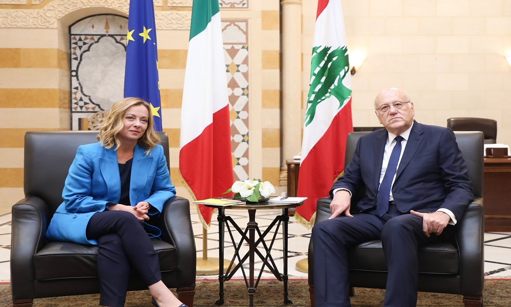 ميقاتي وميلوني يدعوان لتغليب الدبلوماسية وتنفيذ القرار 1701