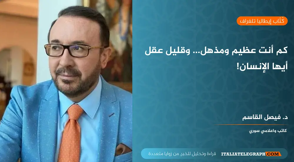 هناك ألف دليل ودليل على أن هذا الكائن المسمى الإنسان يُعتبر فعلاً أعظم ما خُلق أو ما تطورَ من كائنات على هذا الكوكب (كي لا يزعل منا مؤيدو نظرية التطور الدارويني) فسواء كان مخلوقاً أو متطوراً يبقى هذا الكائن تحفة خَلقية أو متطورة شديدة الذكاء والدهاء والإبداع على كل الأصعدة العلمية والصناعية والسياسية والتجارية، والاجتماعية، والثقافية، والفنية. ولو قارنا وضع هذا الكائن قبل آلاف أو ملايين السنين بوضعه الآن لوجدنا حجم التطور والإنجازات المهولة التي حققها البشر، فقد كان الإنسان على مدى آلاف السنين، حسب الدراسات العلمية والأحفورية، مجرد متسكع ينتقل من مكان إلى آخر بحثاً عن الطعام، لا بل كان أضعف المخلوقات في ذلك الزمن، فمعظم الحيوانات كانت أقوى منه، لذلك كان ينتظر الوحوش الكبيرة والصغيرة والطيور الجارحة كي تنتهي من أكل الفريسة حتى يأتي دوره ليأكل ما تبقى من أنسجة وبقايا لحم، لكنه كان على عكس بقية الحيوانات ذكياً، فهو الوحيد الذي كان يكسر عظام الفريسة ليأكل النخاع الموجود داخلها، لذلك فقد ظل يستخدم عقله ويتطور حتى أطلق الثورة المعرفية قبل حوالي سبعين ألف عام وأصبح يتحكم بالطبيعة وما عليها من نباتات وحيوانات أخرى بشكل مذهل خاصة بعد أن بدأ يستخدم النار والضوء وبعد أن ازداد دماغه حجماً وتغيرت طبيعة جهازه الهضمي وتركيبة فمه وفكيه. ومنذ الثورة المعرفية مروراً بالثورة الزراعية قبل حوالي اثني عشر ألف عام التي مكنته من الاستقرار في مناطق محددة، وهو يتطور ويسيطر على كوكب الأرض بشكل رهيب، وهذا الاستقرار جعله يقفز لاحقاً من عصر العصر الزراعي والحديدي وغيره إلى عصر الصناعة، لا بل إنه قضى على الأشكال الأخرى من بني جنسه كالنياندرتال وغيره من الأجناس.