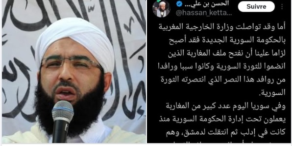 حسن الكتاني، أحد شيوخ السلفية الجهادية سابقا ورئيس ما يسمى رابطة علماء المغرب العربي التي تأسست عقب الربيع العربي ويوجد عنوانها القانوني باسطنبول، كتب في تغريدة على منصة “إكس” (تويتر سابقا) “أما وقد تواصلت وزارة الخارجية المغربية بالحكومة السورية الجديدة فقد أصبح لزاما علينا أن نفتح ملف المغاربة الذين انضموا للثورة السورية وكانوا سببا ورافدا من روافد هذا النصر الذي انتصرته الثورة السورية”.
