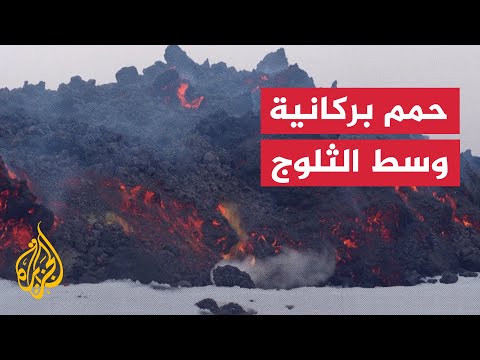 حمم بركانية وسط الثلوج على قمة جبل إتنا في إيطاليا