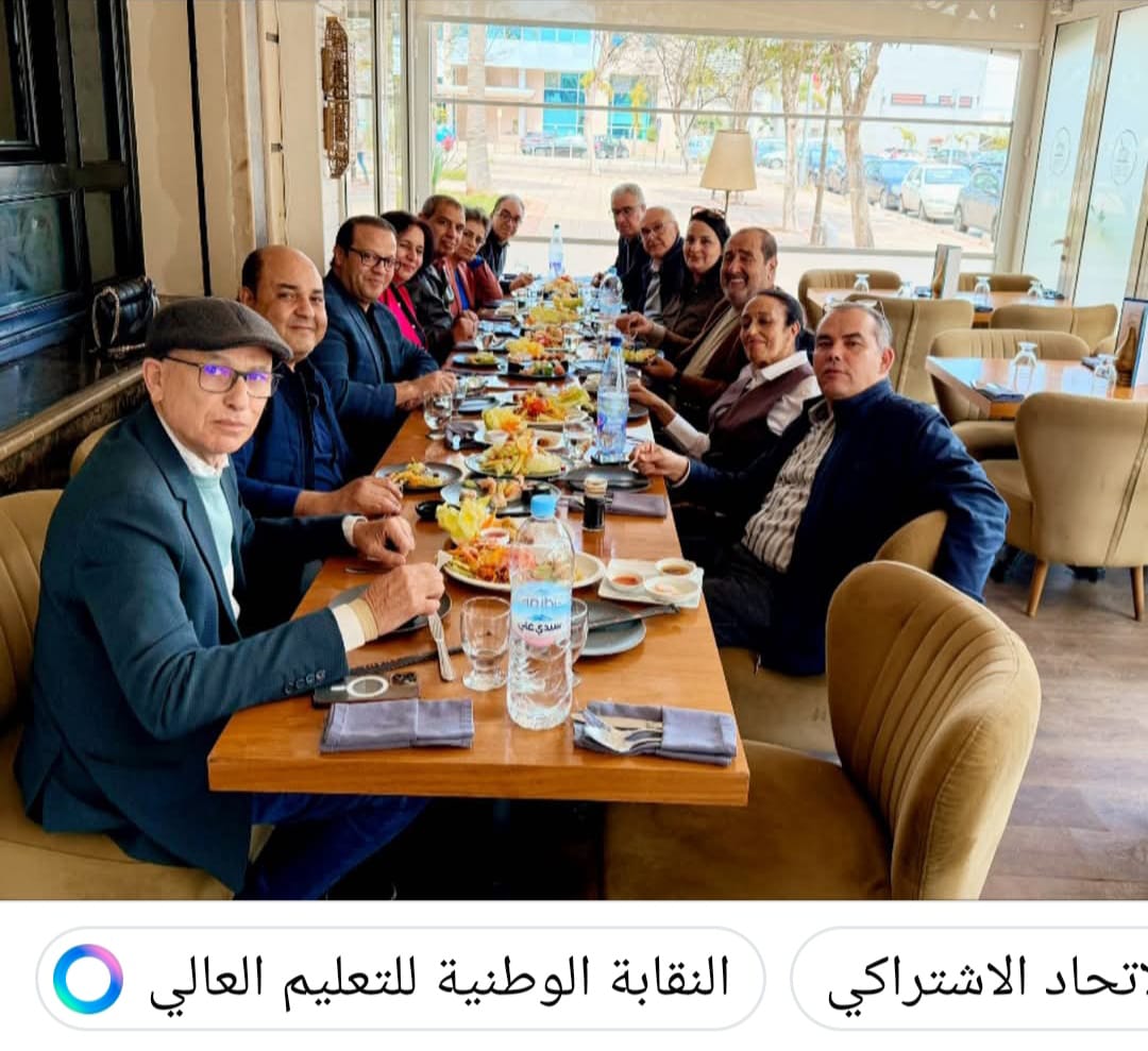 كل التقدير والاحترام للحزب ولمناضليه وللنقابة ولكل الإخوة والاخوات في الصورة… من حقكم ان تجتمعوا وتأكلوا ما لذ وطاب وقتما تشاؤون وأينما يحلوا لكم/ن… من حق الكاتب الاول أن يجتمع مع إخوته وأخواته الاتحاديين والاتحاديات في المكتب الوطني للنقابة ولا حق لأي كان في التدخل في شؤونكم…. هذه من المسلمات… بس الصورة ليست بريئة ويمكن قراءتها من زوايا مختلفة (الأبعاد والرسائل التي يُراد إرسالها لمن يهمهم الامر في مقال لاحق، حسب قراءتي الشخصية).