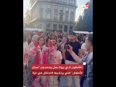 ناشطون في بروكسل يجسدون “مجازر الأطفال” التي يرتكبها الاحتلال في غزة