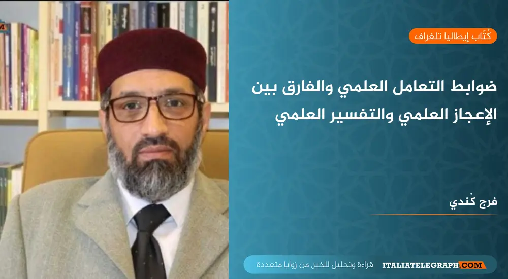 إن التعامل العلمي والفارق بين الإعجاز والتفسير العلمي للقرآن الكريم تحكمه عدة ضوابط على الباحث والدارس والمفسر أن يكون على إلمام ودراية تامة حتى لا يقع في الخطأ، أو يقول في القرآن الكريم ما لم يكن مُراده.