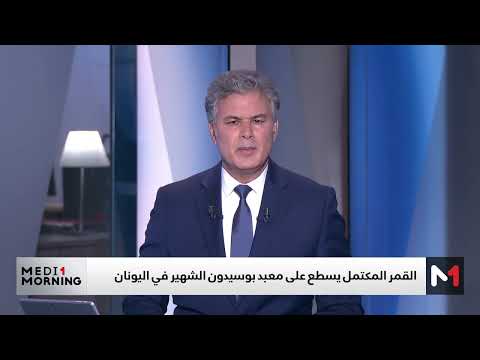 القمر المكتمل يسطع على معبد بوسيدون الشهير في اليونان