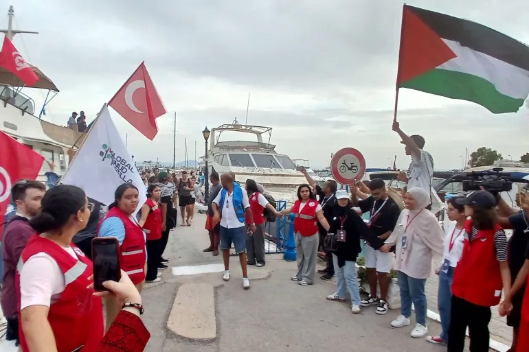 كما انطلقت من ميناء سيدي بوسعيد بالعاصمة تونس -مساء الأحد- سفينة “علاء الدين”، وعلى متنها نشطاء من جنسيات متعددة، وسط توديع جماهيري من الموجودين في الميناء بعيون متابعة وقلوب مشدودة.