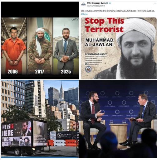 كانت هيلاري كلينتون قالت في مذكراتها إن أمريكا هي التي صنعت جبهة النصرة عن طريق الجنرال باتيرسون، وقال إدوارد سنودن في تسريباته إن الجولاني على علاقة كبيرة بالمخابرات الأمريكية منذ كان في العراق، جاء اليوم الدور على جيمس جيفري، المبعوث الأمريكي السابق إلى سوريا، وهو من أشد أعداء محور المقاو/مة ومن أكبر مناصري إسرائيل، حيث قال في حوار مع قناة عربية “نعرف الشرع منذ أن كان اسمه الـجـولانـي وحميناه من الأسد”.