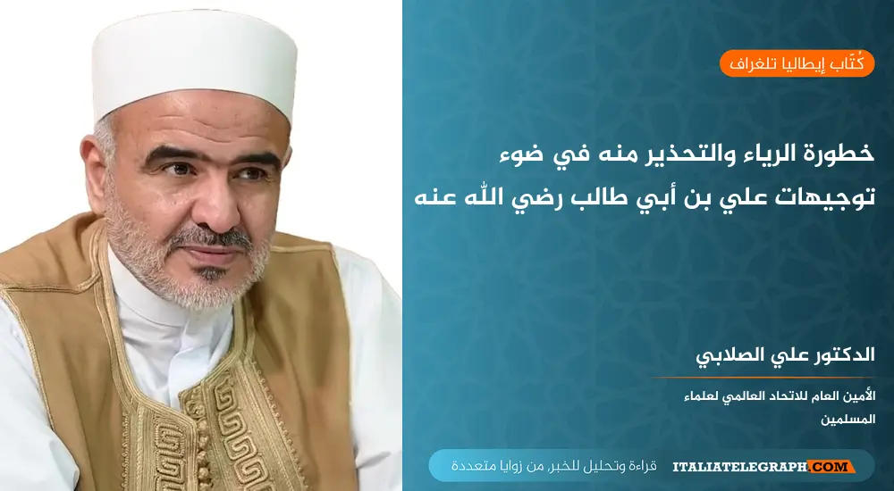 يُعدّ الرياء من أخطر أمراض القلوب التي تهدد صفاء النية ونقاء العمل، إذ يحوّل العبادة من كونها خالصة لله تعالى إلى وسيلة لاكتساب مدح الناس وثنائهم. وقد حذّر أمير المؤمنين علي بن أبي طالب رضي الله عنه من هذا الداء، داعياً إلى الإخلاص في القول والعمل، ومبيّناً أن الأعمال لا تُقبل إلا إذا كانت خالصة لله وعلى هدي سنة نبيه ﷺ. قال أميـر المؤمنين علي رضي الله عنـه: لا تعمل شيئـاً من الخير ريـاءً، ولا تتركه حياءً (1). وقال رضي الله عنه: للمرائي ثلاث علامات: يكسل إذا كان وحده، وينشط إذا كان في الناس، ويزيد في العمل إذا أثني عليه، وينقص إذا ذم به (2).