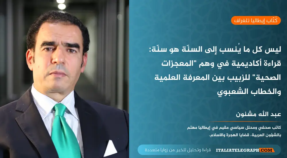ولعلّ من أهم ما يجب التأكيد عليه هنا، أنّ كثيرًا مما يُتداول تحت شعار “الطب النبوي” أو “ما أوصى به النبي ﷺ” لا يمتّ إلى السنّة بصلة. فليس كل ما يُكتب باسم السنّة هو سنّة، ولا كل ما يُنسب إلى الرسول ﷺ له أصل أو سند معتبر. واحترام السنّة لا يتحقّق بترديد ما يُنقل عنها، بل بالقدرة على التمييز بين الصحيح والمنحول، وبين النص الثابت والرواية الشائعة.