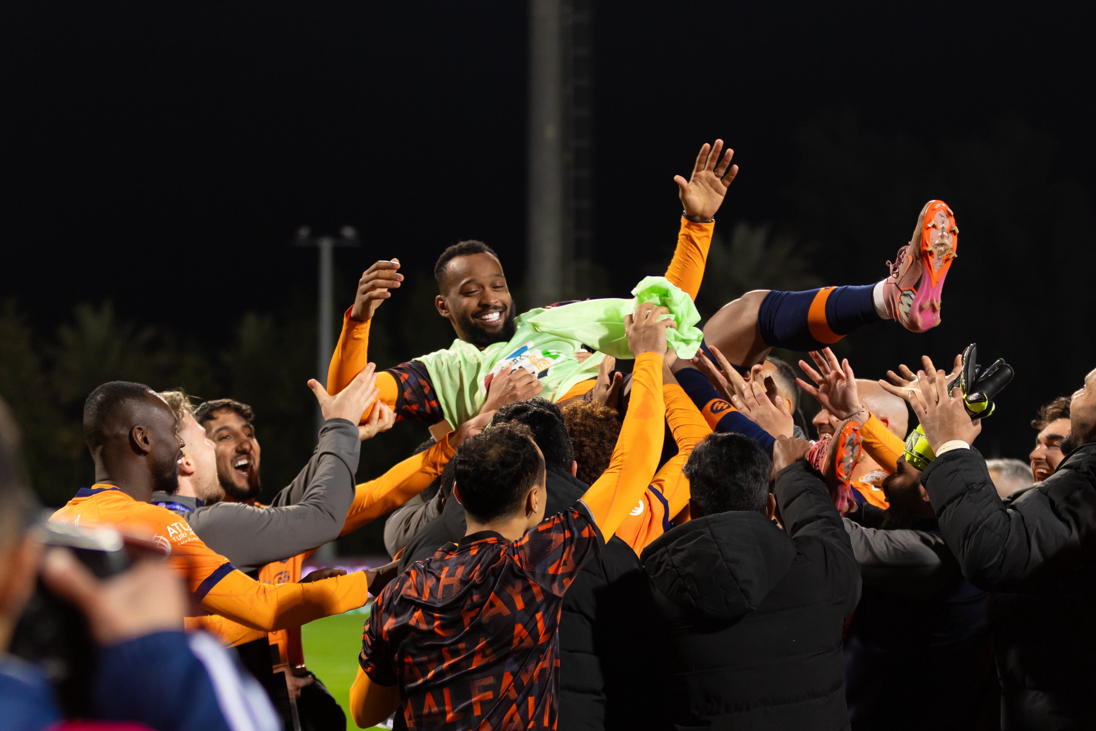 شارك لاعبو فريق الفيحاء السعودي زميلهم مخير الرشيدي فرحته بمعرفة جنس مولوده الجديد، عقب انتهاء مباراة الفريق أمام النجمة مساء الخميس ضمن الجولة 21 من الدوري السعودي لكرة القدم.