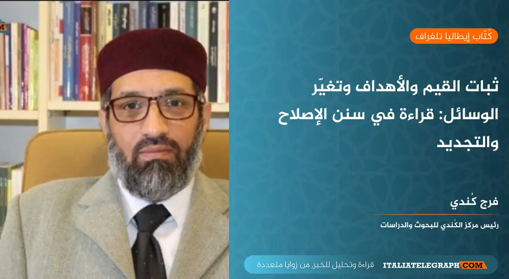 غير أن الإشكال لا يكمن في القيم أو الأهداف، بل في الوسائل التي تُستخدم لتحقيقها، إذ إن هذه الوسائل بطبيعتها مرتبطة بالواقع المتغير، وتتأثر بالظروف السياسية والاقتصادية والتقنية، ولذلك فهي تحتاج إلى مواكبة تجديد مستمر، حتى تظل قادرة على تحقيق الغايات الكبرى. فالوسيلة التي كانت ناجحة في زمن معين قد تصبح غير فعالة في زمن آخر، بل قد تتحول إلى عائق إذا أُصرّ على استخدامها رغم تغير السياق