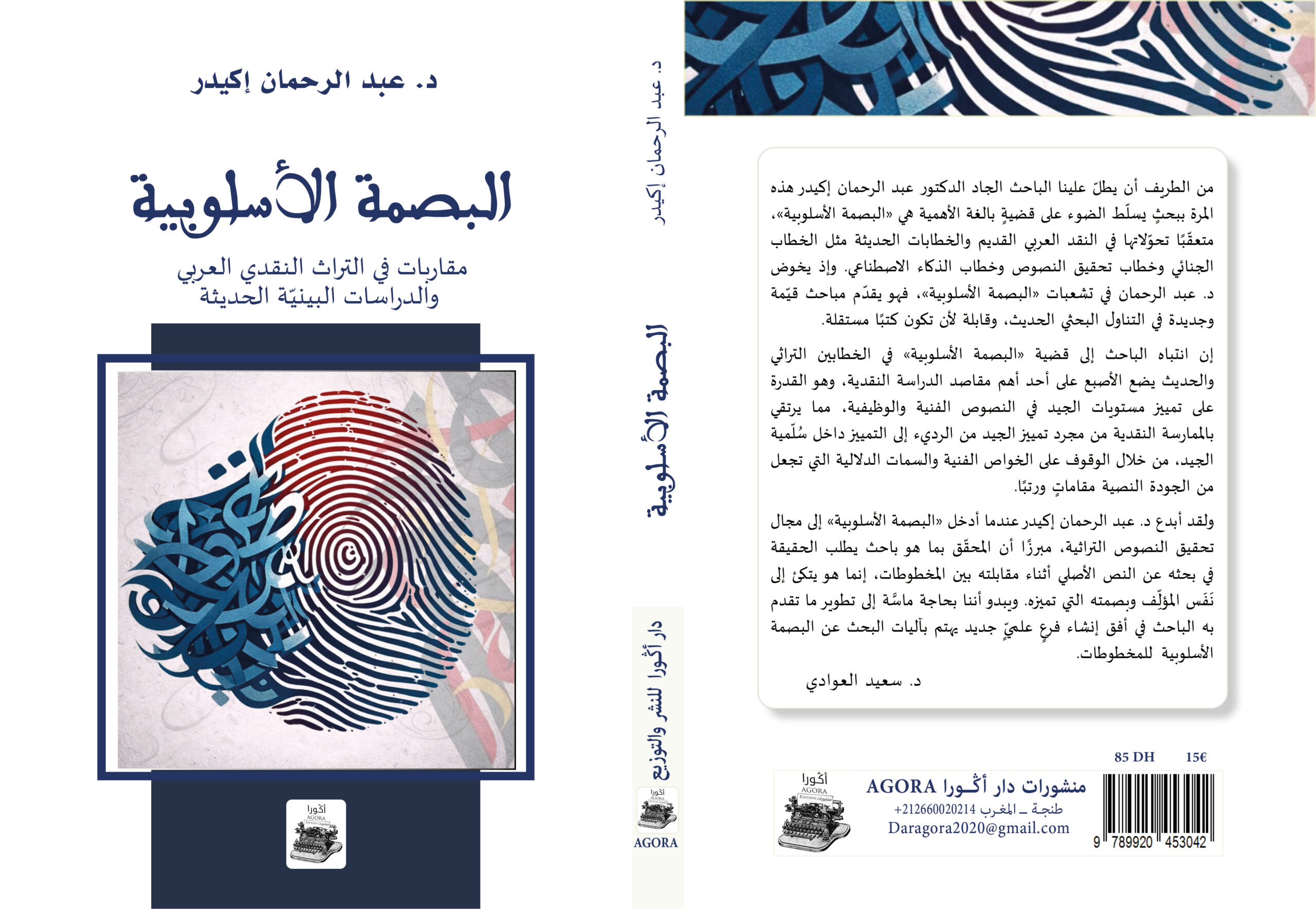 صدر عن دار النشر أكورا بطنجة المملكة المغربية كتاب “البصمة الأسلوبية؛ مقاربات في التراث النقدي العربي والدراسات البينية الحديثة” (2026) للناقد والأكاديمي الدكتور عبد الرحمان إكيدر، ويُعد الكتاب دراسة نقدية تبحث في مفهوم (البصمة الأسلوبية) وفي تطبيقاتها الإجرائية.