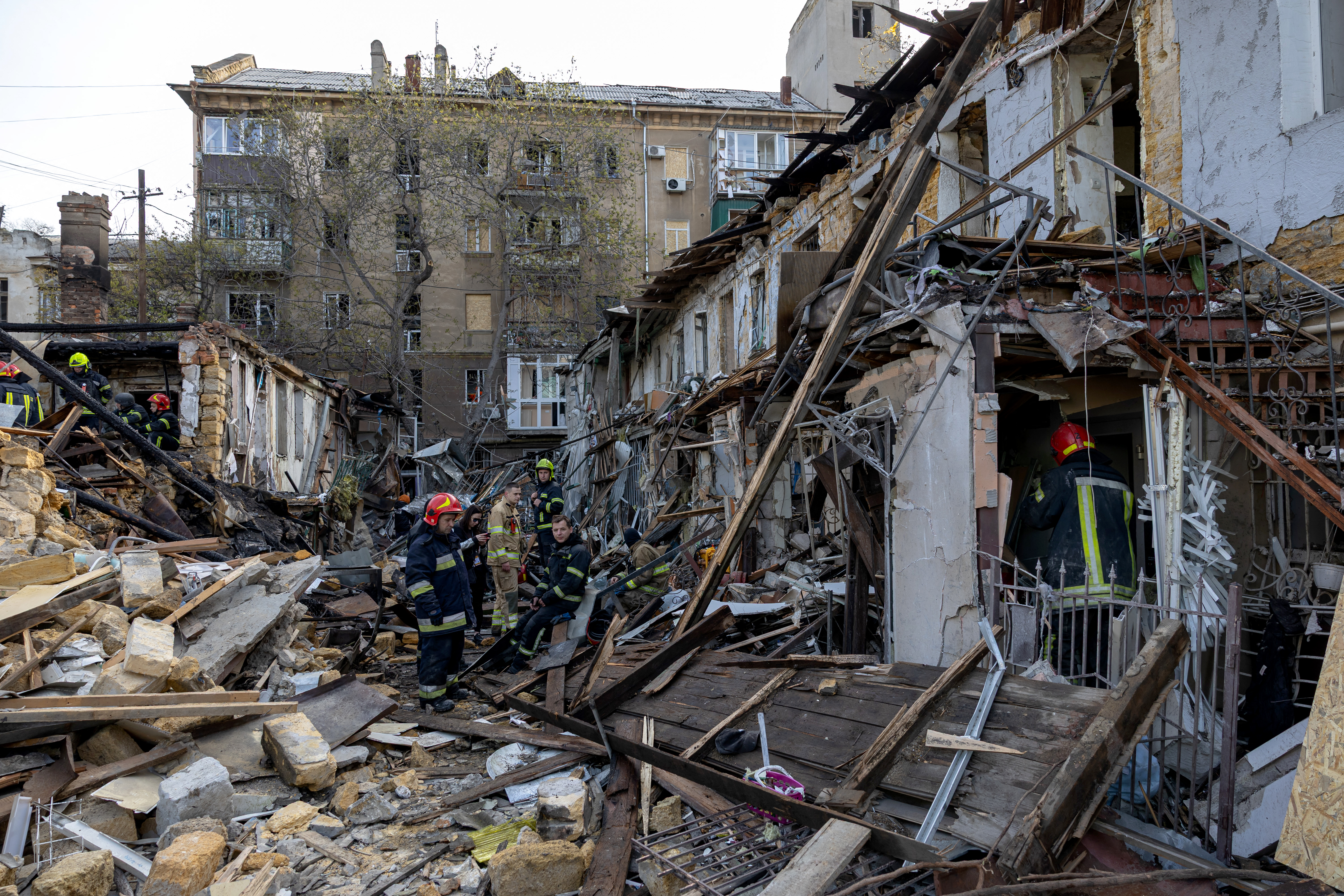 وقال رئيس الإدارة العسكرية المحلية، سيرهي ليساك، عبر تطبيق تليغرام، إن مبنى سكنيا وعدة مواقع مدنية في المدينة تعرضت للقصف. كما أفاد حاكم المنطقة، أوليه كيبر، بوقوع أضرار في البنية التحتية للميناء.
