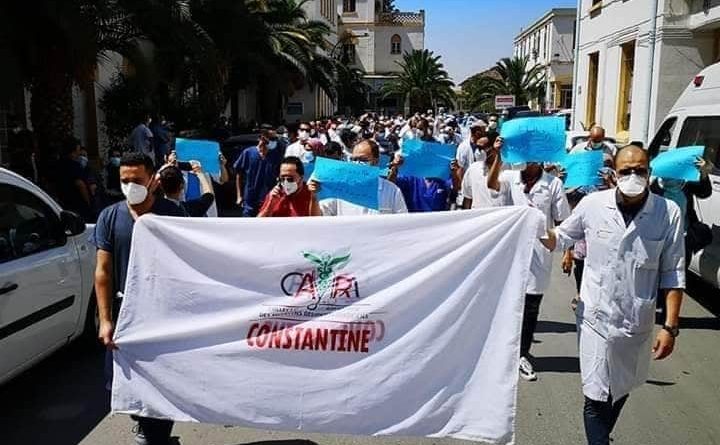 في المقابل، خرج العشرات من الأطباء والممرضين والإداريين بمستشفى قسنطينة (400 كيلومتر شرق العاصمة) في وقفة احتجاجية للمطالبة بتوفير الأمن في المستشفى، مؤكدين أن العاملين في المؤسسات الصحية يمارسون مهامهم في ظروف غير طبيعية، وأنهم سبق أن طالبوا من السلطات بتوفير حماية لهم، بنشر رجال الأمن في قسم كوفيد- 19 وقسم الاستعجالات، ولكن ذلك لم يتم.