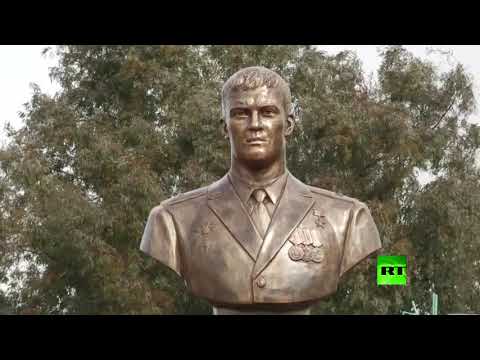 إزاحة الستار عن تمثال طيار روسي بطل في قاعدة “حميميم” الروسية بسوريا