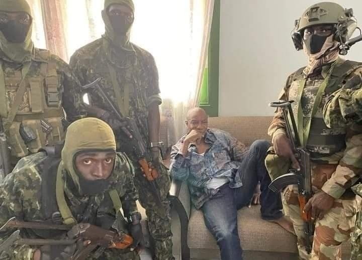 وبثّ الانقلابيون فيديو للرئيس كوندي مقبوضا عليه فيما رفض ألفا كوندي وهو جالس على كنبة ويرتدي بنطال جينز وقميصا، الإجابة حين سئل إن كان قد تعرّض لسوء معاملة.