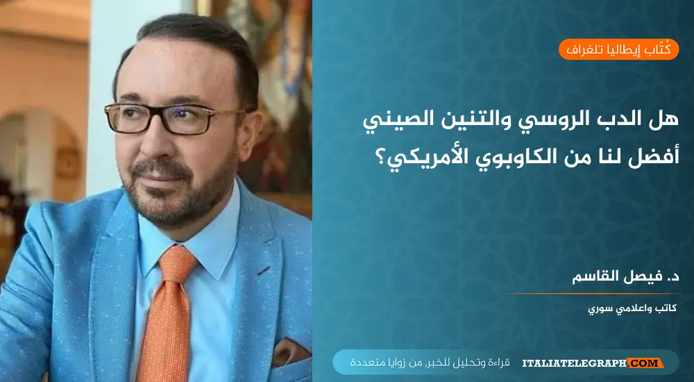 طبعاً لا يمكن أن ننكر مطلقاً أن الكاوبوي الأمريكي يدعم الاحتلال الإسرائيلي ويحتضنه ومن حق العرب المبتلين بالضرر الأمريكي أن يكرهوا أمريكا والغرب عموماً، لكن مهلاً أيها السادة، ومن قال لكم إن الصيني والروسي سيكونان أفضل من الغربي؟ هل كان المستعمرون يوماً جمعيات خيرية تبني قوة عسكرية واقتصادية هائلة لتهديها للفقراء والمحتاجين في أصقاع العالم، أم أنها تبني نفسها كي تلتهم الآخرين وتستغلهم وتسيطر عليهم وتبيدهم أحياناً. هكذا علمنا التاريخ دائماً.