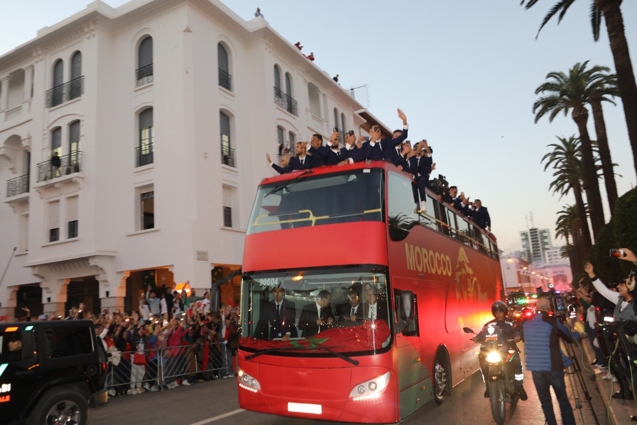 و خرج آلاف المغاربة إلى شوارع الرباط أمس لاستقبال المنتخب المغربي لكرة القدم، بعد تحقيقه إنجازا تاريخيا في مونديال قطر ووصوله لنصف النهائي، للمرة الأولى في تاريخ كرة القدم العربية والأفريقية.